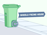 • Trash, Recycling, Grass and Glass carts will go in the street, wheels against the curb for collection